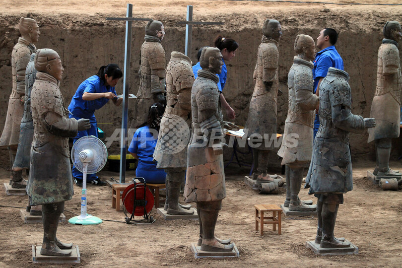 【6月13日 AFP】中国陝西(Shaanxi)省西安(Xian)郊外にある世界遺産、秦の始皇帝陵の遺跡の第1号坑で、新たに110体の兵馬俑が発掘された。遺構がある秦始皇兵馬俑博物館(Qin Shihuang Terracotta Warriors and Horses Museum)が11日、発表した。