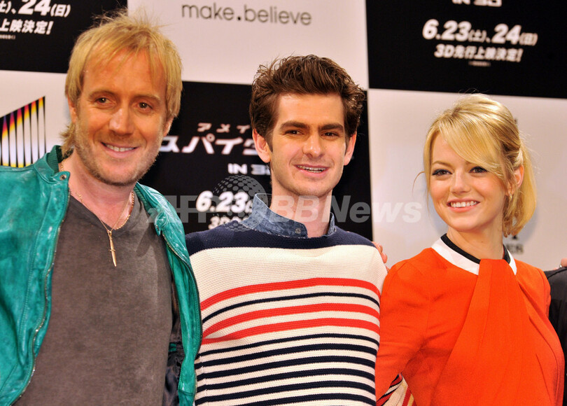 【6月14日 AFP】米映画『アメイジング・スパイダーマン(The Amazing Spider-Man)』のワールドプレミアが13日、都内で開催され、主人公ピーター・パーカー(Peter Parker)を演じたアンドリュー・ガーフィールド(Andrew Garfield)、ガールフレンド役のエマ・ストーン(Emma Stone)らが出席した。この日はプレミアに先立ち、出演者・監督らの来日会見も行われた。(c)AFP