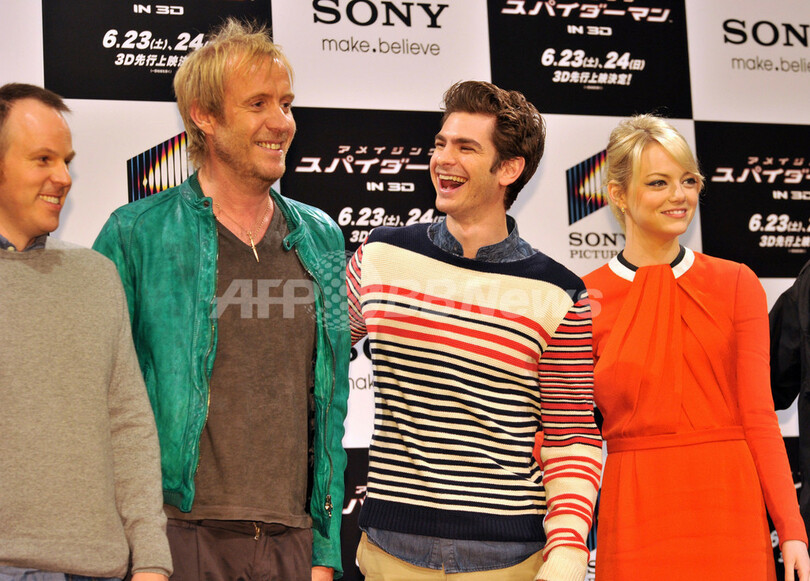 【6月14日 AFP】米映画『アメイジング・スパイダーマン(The Amazing Spider-Man)』のワールドプレミアが13日、都内で開催され、主人公ピーター・パーカー(Peter Parker)を演じたアンドリュー・ガーフィールド(Andrew Garfield)、ガールフレンド役のエマ・ストーン(Emma Stone)らが出席した。この日はプレミアに先立ち、出演者・監督らの来日会見も行われた。(c)AFP