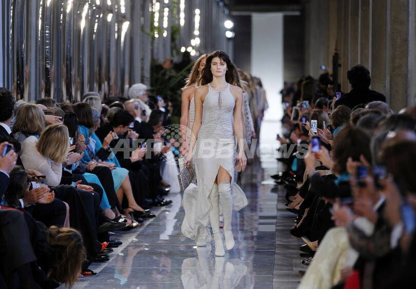 【6月19日 AFP】フランス・パリのルーブル美術館(Musee du Louvre)で12日、マッシミリアーノ・ジョルネッティ(Massimiliano Giornetti)が手がける「サルヴァトーレ フェラガモ(Salvatore Ferragamo)」が13年クルーズコレクションを発表した。