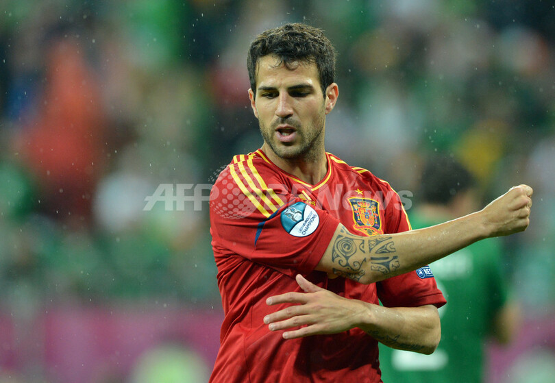 後半38分にチーム4得点目を挙げたスペインのセスク・ファブレガス(Cesc Fabregas、2012年6月14日撮影)。(c)AFP/GABRIEL BOUYS