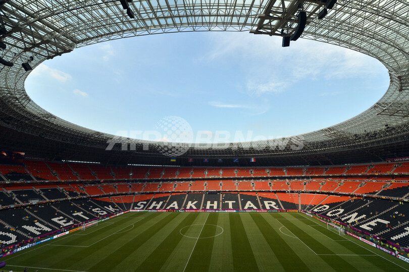 試合会場となったドンバス・アレナ(Donbass Arena、2012年6月15日撮影)。(c)AFP/SERGEI SUPINSKY