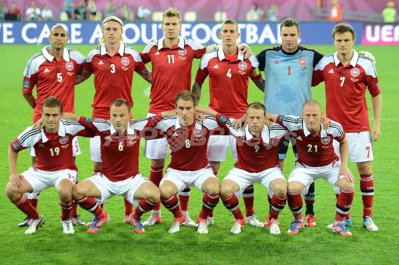 試合前の写真撮影に臨むデンマークの選手(2012年6月17日撮影)。(c)AFP/DAMIEN MEYER