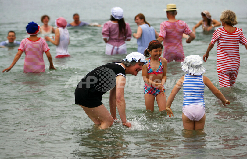 ニュース ライフ こぼれ話 19世紀の水着でレトロな海開き、ドイツ北東部 2012年6月18日 11:57 発信地:ハイリゲンダム/ドイツ [ ヨーロッパ ドイツ ] このニュースをシェア ‹ › ❮ 5/8 ❯ バルト海沿岸のドイツ北東部ハイリゲンダム(Heiligendamm)で16日、「歴史海水浴クラブ」による毎年恒例の海開きが行われ、1825年前後の水着を再現したコスチューム姿の老若男女が今年初の海水浴を楽しんだ(2012年6月16日撮影)。(c)AFP/JENS BUETTNER 画像作成中 ! 【6月18日 AFP】バルト海沿岸のドイツ北東部ハイリゲンダム(Heiligendamm)で16日、「歴史海水浴クラブ」による毎年恒例の海開きが行われ、1825年前後の水着を再現したコスチューム姿のメンバーが浜辺に彩りを添えた。(c)AFP ライフ 一覧へ> メディア・報道関係・法人の方向け 写真・動画 購入のお問合せ>