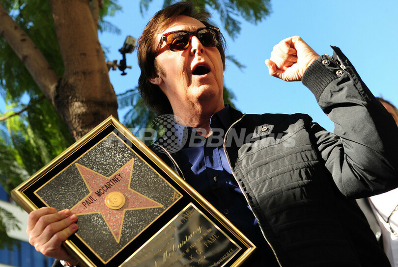 写真は、米カリフォルニア(California)州 ロサンゼルス(Los Angeles)で、ハリウッドの殿堂「ハリウッド・ウォーク・オブ・フェーム(Hollywood Walk of Fame)」入りし、記念式典に出席したポール・マッカートニー(2009年2月9日撮影)。(c)AFP/ FREDERIC J. BROWN