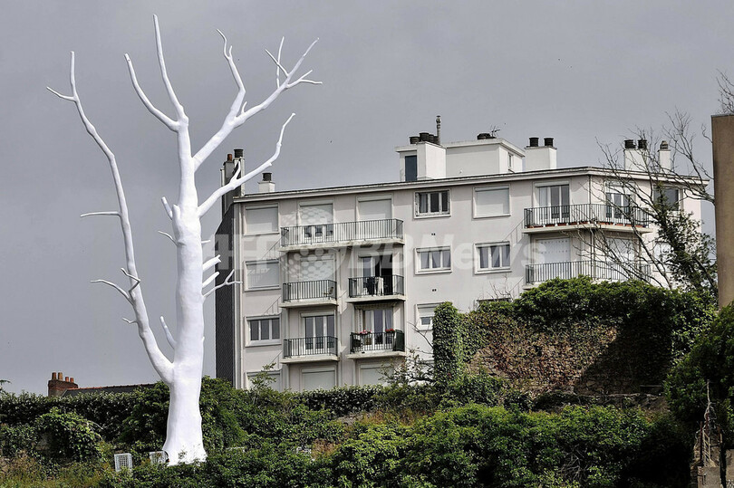写真はフランスのペトラ・ムザクとジャンフランソワ・モリソー(Petra Mrzyk et Jean-Francois Moriceau)の作品「The lunar tree」(2012年6月9日撮影)。(c)AFP/JEAN-SEBASTIEN EVRARD