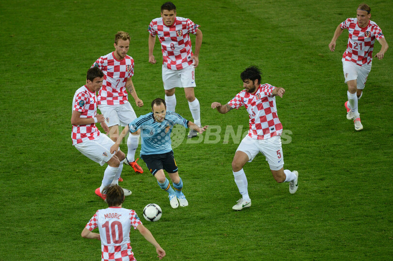 【6月19日 AFP】(記事更新、写真追加)サッカー欧州選手権2012(UEFA Euro 2012)は18日、共催国ポーランドでグループCの2試合が行われ、グダニスク(Gdansk)ではスペインが1-0でクロアチアを下し、グループ首位で準々決勝進出を果たした。
