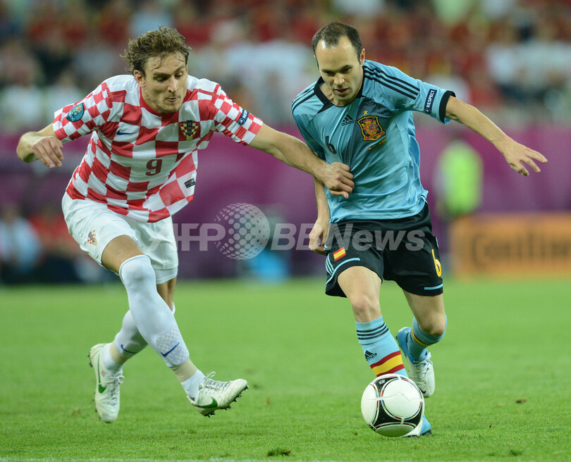 【6月19日 AFP】(記事更新、写真追加)サッカー欧州選手権2012(UEFA Euro 2012)は18日、共催国ポーランドでグループCの2試合が行われ、グダニスク(Gdansk)ではスペインが1-0でクロアチアを下し、グループ首位で準々決勝進出を果たした。