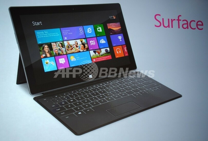 【6月19日 AFP】(写真追加)米マイクロソフト(Microsoft)は18日、米ロサンゼルス(Los Angeles)で開いたメディア向けイベントでタブレット型端末「サーフェス(Surface)」を発表した。タブレット型端末市場を支配している米アップル(Apple)のiPadシリーズに独自の製品で挑戦する。