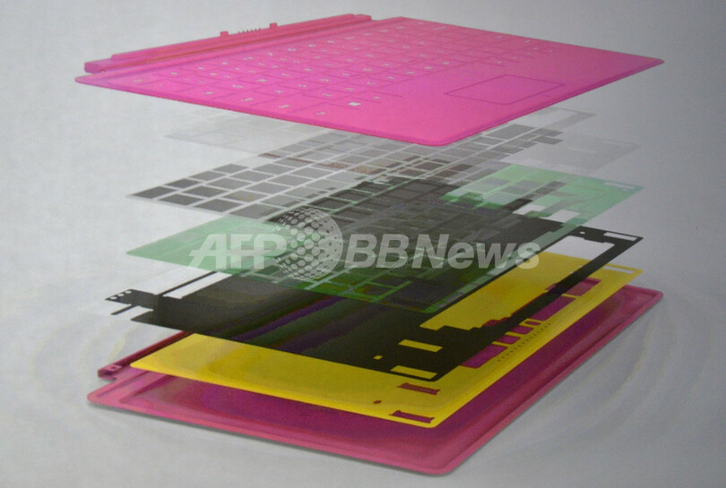 【6月19日 AFP】(写真追加)米マイクロソフト(Microsoft)は18日、米ロサンゼルス(Los Angeles)で開いたメディア向けイベントでタブレット型端末「サーフェス(Surface)」を発表した。タブレット型端末市場を支配している米アップル(Apple)のiPadシリーズに独自の製品で挑戦する。