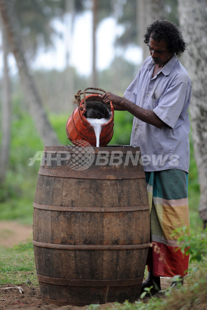 ニュース 政治・経済 ヤシから作る地酒「トディ」、樹液集めは綱渡り スリランカ 2012年6月21日 16:45 発信地:ワドゥワ/スリランカ [ アジア・オセアニア スリランカ ] このニュースをシェア ‹ › ❮ 4/8 ❯ スリランカ南西部ワドゥワ(Wadduwa)で人気の飲み物は、ココヤシの樹液を発酵させたトディと呼ばれるヤシ酒だ。トディの原料となる樹液は、高くそびえるヤシの木の間に張り巡らされたロープを伝って集める(2012年6月20日撮影)。(c)AFP/Ishara S. KODIKARA 画像作成中 ! 【6月21日 AFP】スリランカ南西部ワドゥワ(Wadduwa)で人気の飲み物は、ココヤシの樹液を発酵させたトディと呼ばれるヤシ酒だ。トディの原料となる樹液は、高くそびえるヤシの木の間に張り巡らされたロープを伝って集める。(c)AFP 政治・経済 一覧へ> メディア・報道関係・法人の方向け 写真・動画 購入のお問合せ>