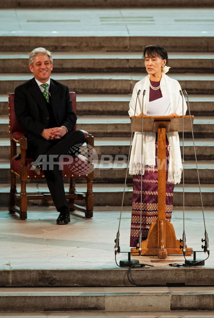 【6月22日 AFP】欧州歴訪中のミャンマーの民主化運動指導者アウン・サン・スー・チー(Aung San Suu Kyi)氏(67)は21日、外国人女性として初めて英国議会両院で演説した。