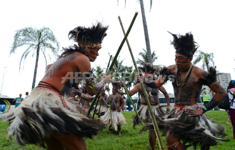 宣言はまた、「リオ+20」が提唱するグリーン経済について「自然の生命力を商品化することでしか自然を『救う』ことができないという考えを前提にしているが、それは先住民たちと母なる大地が520年にわたって抵抗してきた植民地主義の延長だと考える。私たち先住民の自己決定、自治、それに基づく開発、土地・居住地・資源に対してわれわれが持つ固有の権利などは、ますます各国政府と多国籍企業の連合による攻撃にさらされている」とも訴えている。(c)AFP