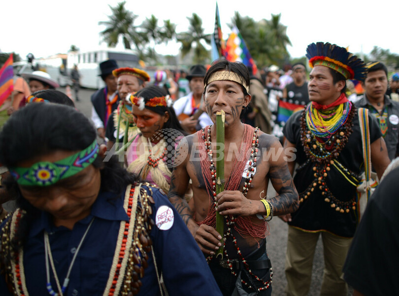 【6月22日 AFP】ブラジル・リオデジャネイロ(Rio de Janeiro)で国連持続可能な開発会議(リオ+20、Rio+20)に対抗して開かれている「ピープルズ・サミット(People's Summit)」で21日、米大陸5か国の先住民族らが、リオ+20が提唱する「グリーン経済」は「人道に対する罪」だと批判する宣言を発表した。