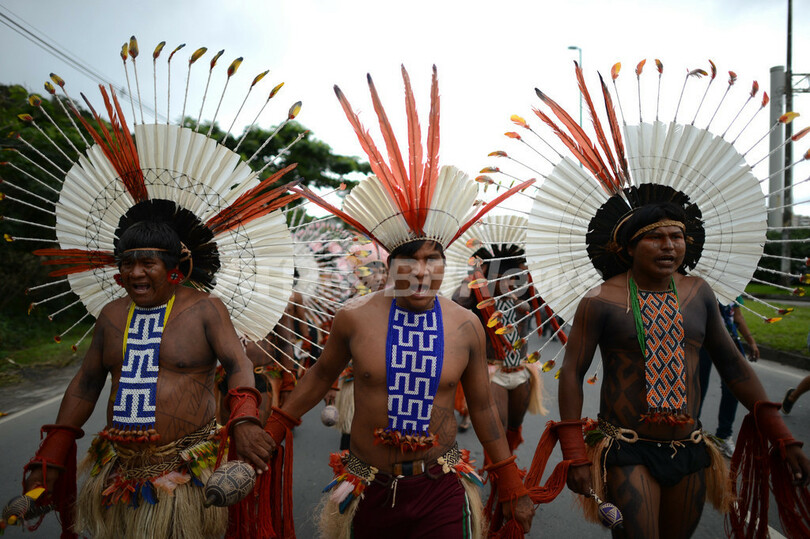 宣言はまた、「リオ+20」が提唱するグリーン経済について「自然の生命力を商品化することでしか自然を『救う』ことができないという考えを前提にしているが、それは先住民たちと母なる大地が520年にわたって抵抗してきた植民地主義の延長だと考える。私たち先住民の自己決定、自治、それに基づく開発、土地・居住地・資源に対してわれわれが持つ固有の権利などは、ますます各国政府と多国籍企業の連合による攻撃にさらされている」とも訴えている。(c)AFP