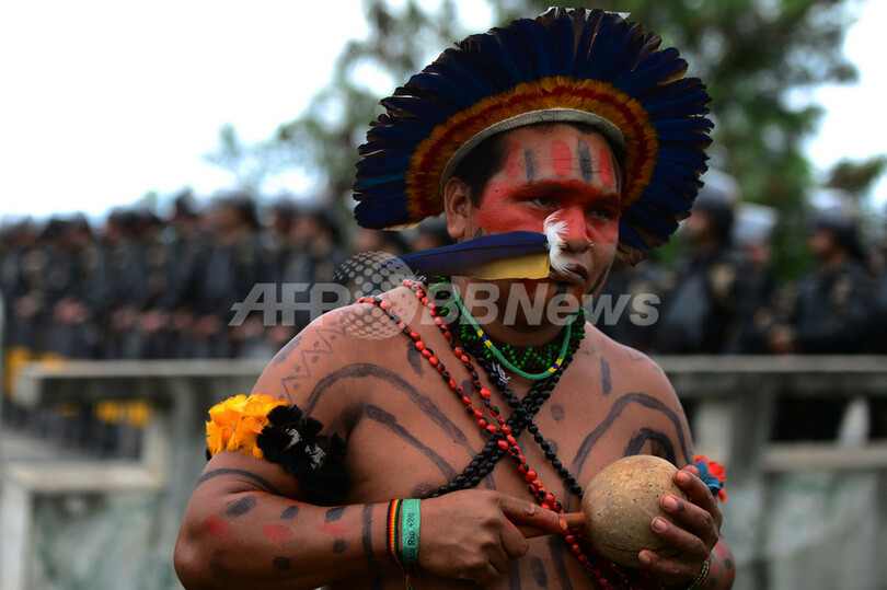 宣言はまた、「リオ+20」が提唱するグリーン経済について「自然の生命力を商品化することでしか自然を『救う』ことができないという考えを前提にしているが、それは先住民たちと母なる大地が520年にわたって抵抗してきた植民地主義の延長だと考える。私たち先住民の自己決定、自治、それに基づく開発、土地・居住地・資源に対してわれわれが持つ固有の権利などは、ますます各国政府と多国籍企業の連合による攻撃にさらされている」とも訴えている。(c)AFP