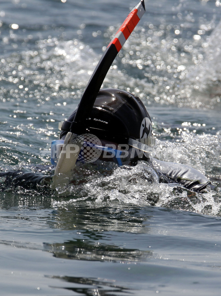 クロワゾンさんは、世界5大陸間を泳いで渡る偉業に挑戦中。(c)AFP