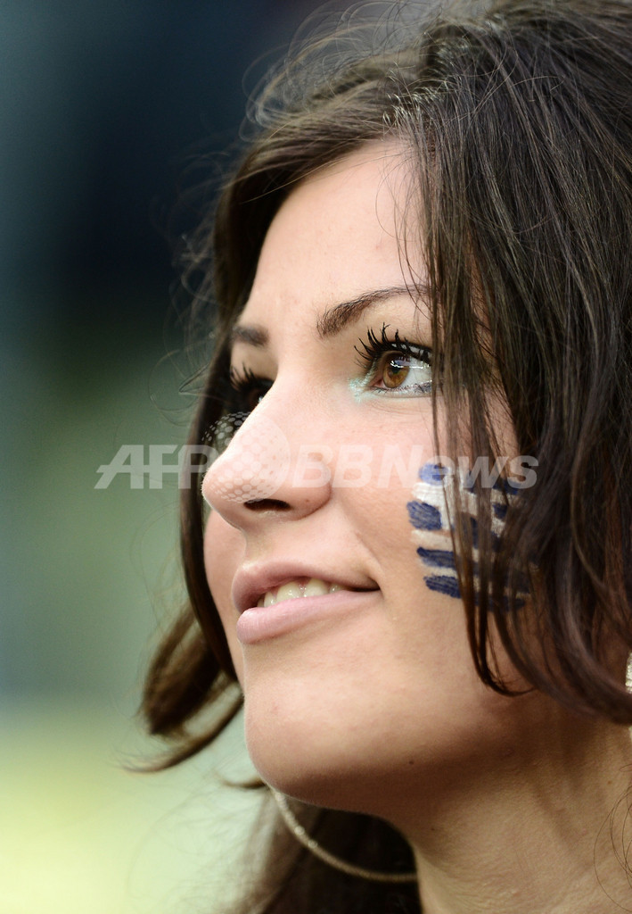 試合開始を待つギリシャのサポーター(2012年6月22日撮影)。(c)AFP/ARIS MESSINIS