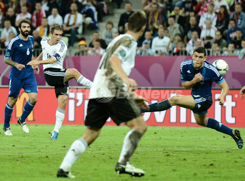 【6月23日 AFP】サッカー欧州選手権2012(UEFA Euro 2012)は22日、共催国ポーランドのグダニスク(Gdansk)で準々決勝が行われ、ドイツが4-2でギリシャを破り、ベスト4に進出した。