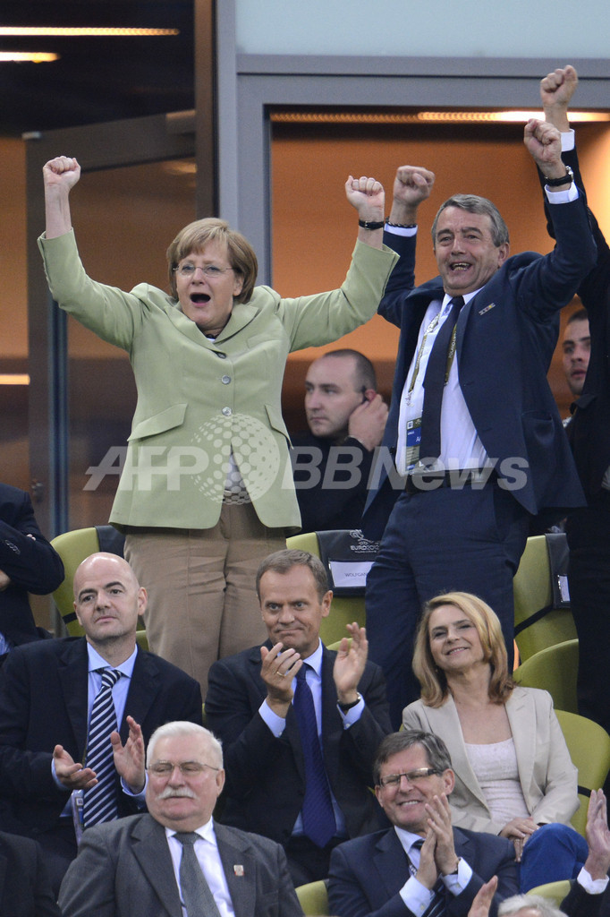 ニュース 政治・経済 ドイツ対ギリシャ戦、メルケル首相も会場で大興奮 2012年6月23日 13:21 発信地:グダニスク/ポーランド [ ヨーロッパ ポーランド ] このニュースをシェア ‹ › ❮ 8/19 ❯ ポーランド・グダニスク(Gdansk)で22日行われたサッカー欧州選手権2012(UEFA Euro 2012)準々決勝、ドイツ対ギリシャ戦で、ドイツのアンゲラ・メルケル(Angela Merkel)首相(左)が会場で観戦し、選手らに熱いエールを送った(2012年6月22日撮影)。(c)AFP/FABRICE COFFRINI 画像作成中 ! 【6月23日 AFP】ポーランド・グダニスク(Gdansk)で22日行われたサッカー欧州選手権2012(UEFA Euro 2012)準々決勝、ドイツ対ギリシャ戦で、ドイツのアンゲラ・メルケル(Angela Merkel)首相が会場で観戦し、選手らに熱いエールを送った。(c)AFP 政治・経済 一覧へ> メディア・報道関係・法人の方向け 写真・動画 購入のお問合せ>