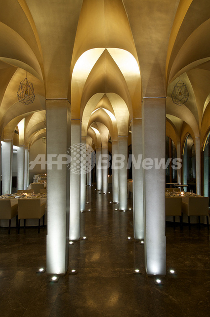 一方、インド・ジャイプール(Jaipur)のレストラン「バジュラ(Vajra)」では、店内にライトアップされたアーチ状の柱が並び、まるで教会の中にいる気分で食事が楽しめる。