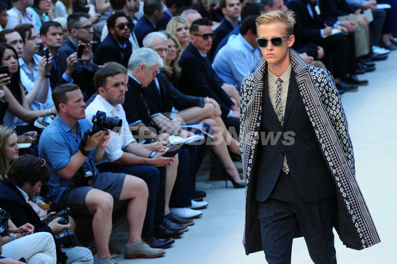 23日には、クリストファー・ベイリー(Christopher Bailey)が手がける「バーバリー プローサム(BURBERRY PRORSUM)」が新作を発表した。(c)AFP