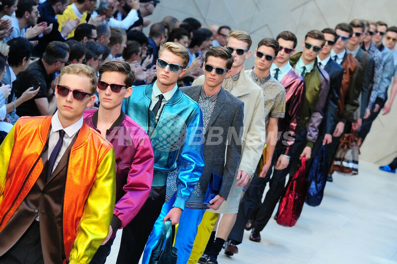 23日には、クリストファー・ベイリー(Christopher Bailey)が手がける「バーバリー プローサム(BURBERRY PRORSUM)」が新作を発表した。(c)AFP