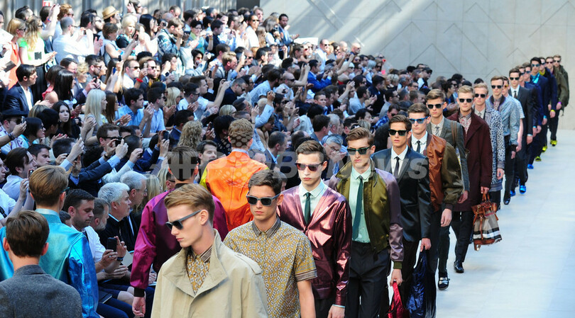 23日には、クリストファー・ベイリー(Christopher Bailey)が手がける「バーバリー プローサム(BURBERRY PRORSUM)」が新作を発表した。(c)AFP