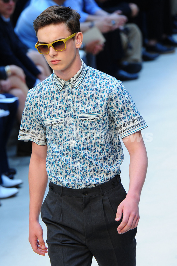 23日には、クリストファー・ベイリー(Christopher Bailey)が手がける「バーバリー プローサム(BURBERRY PRORSUM)」が新作を発表した。(c)AFP