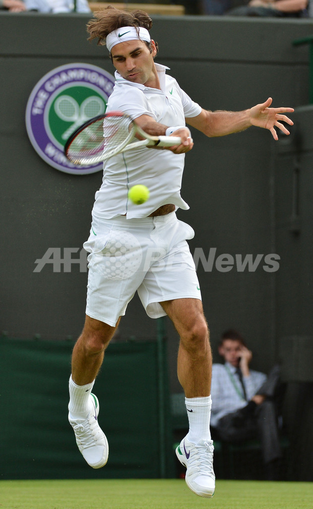 リターンを打つロジャー・フェデラー(2012年6月25日撮影)。(c)AFP/ANDREW YATES