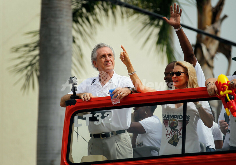 パレードに参加するマイアミ・ヒートのパット・ライリー(Pat Riley)社長(2012年6月25日撮影)。(c)AFP/Getty Images/Joe Raedle