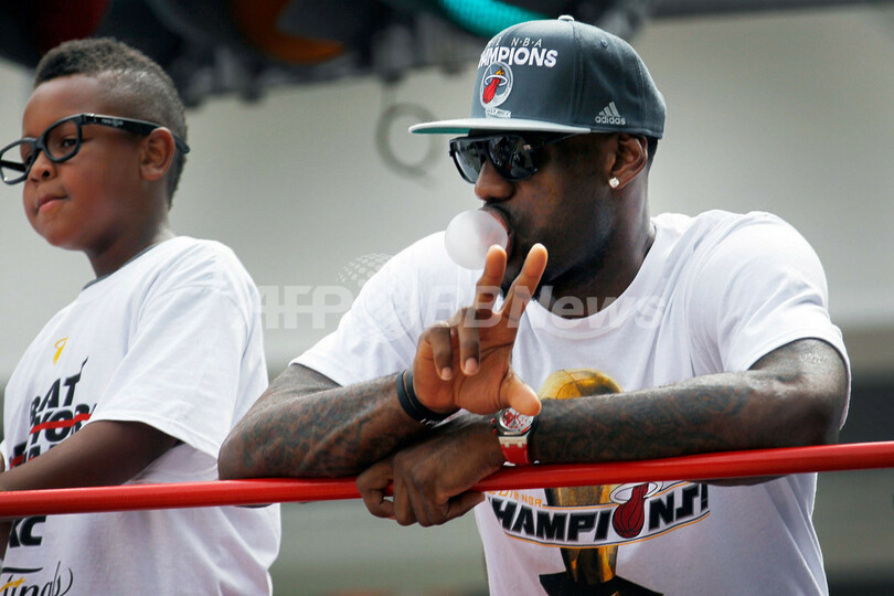 【6月26日 AFP】11-12NBAファイナルを制したマイアミ・ヒート(Miami Heat)が25日、マイアミ(Miami)市内で優勝パレードを行った。