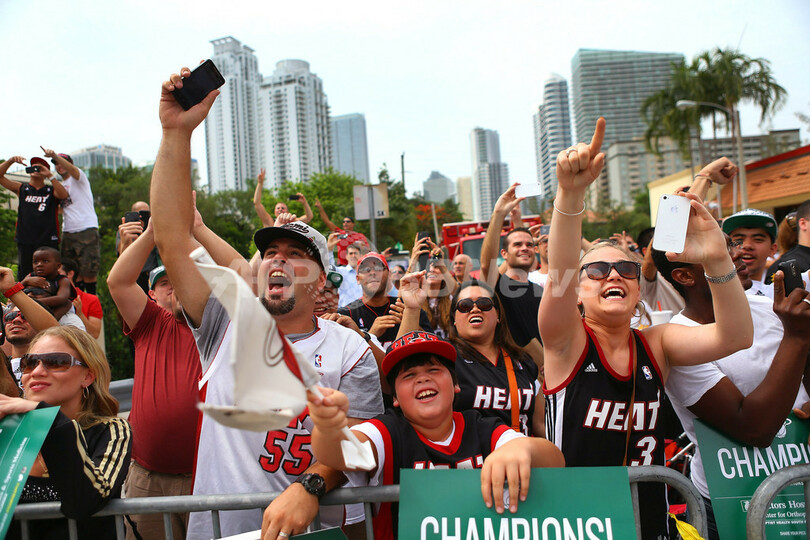 対戦成績4勝1敗でオクラホマシティ・サンダー(Oklahoma City Thunder)を下し、チーム史上2度目のファイナル制覇を飾ったヒートの選手は、オープントップの2階建てバスに乗り、駆けつけた数十万人のファンから歓声を受けた。