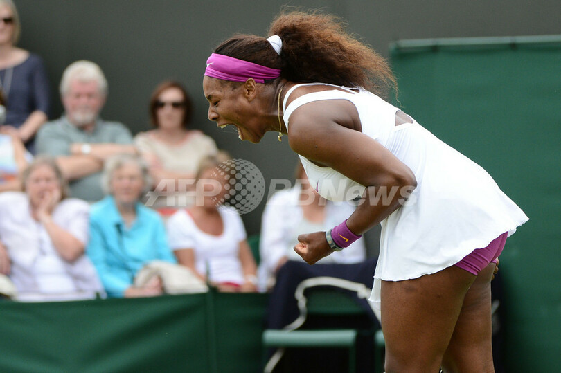 ポイントを奪い歓喜するセレーナ・ウィリアムス(2012年6月26日撮影)。(c)AFP/ANDREW YATES