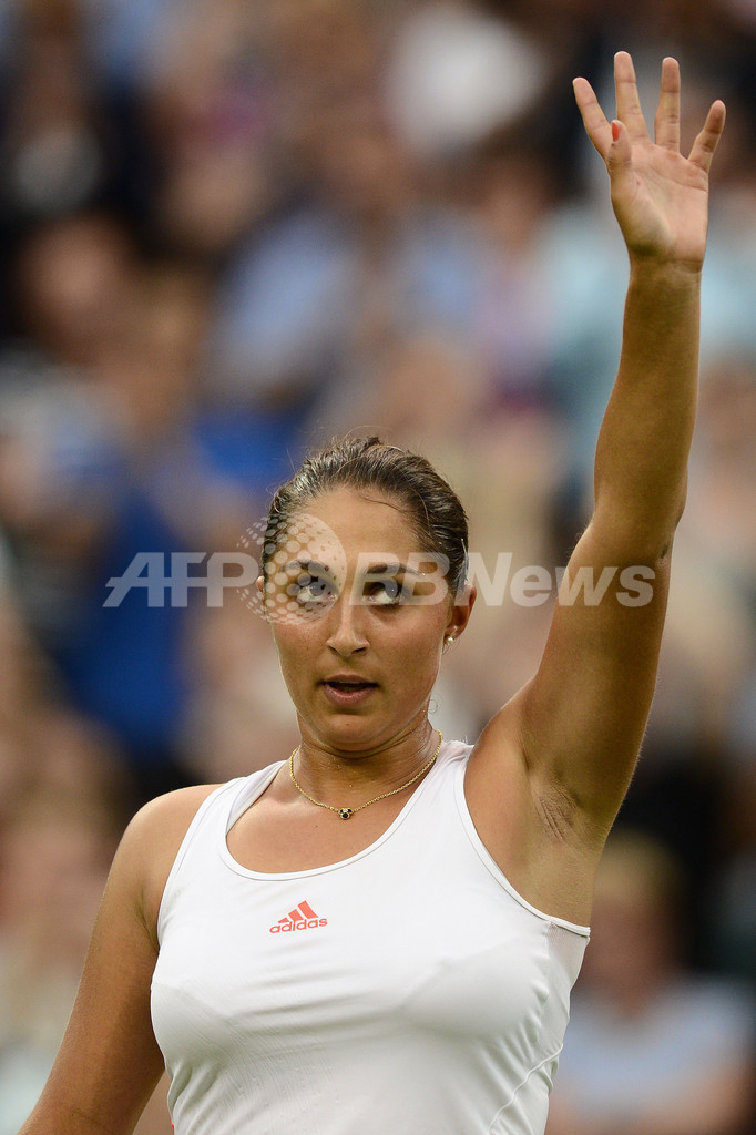 試合に勝利し、歓声に応えるタミラ・パシュツェク(2012年6月27日撮影)。(c)AFP/ANDREW YATES