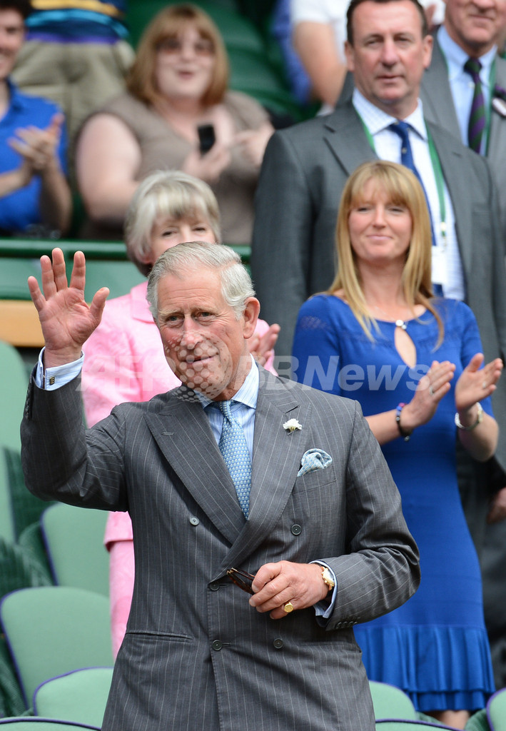 試合観戦に姿を見せたチャールズ皇太子(Prince Charles、2012年6月27日撮影)。(c)AFP/ANDREW YATES