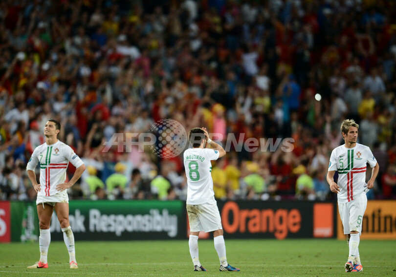 共催国ウクライナのドネツク(Donetsk)で行われた準決勝でスペインと対戦したポルトガルは、両チーム無得点のまま0-0で迎えたペナルティーキック(PK)戦に2-4で敗れ、大会2度目の決勝進出を逃した。