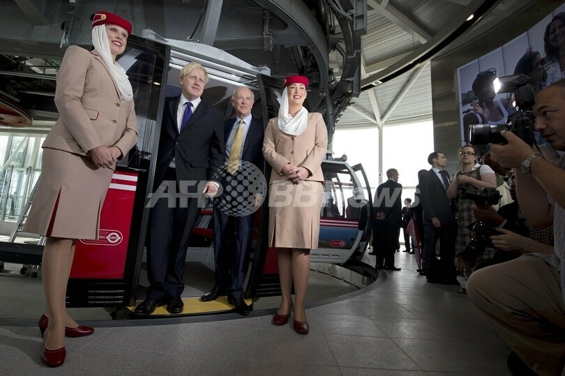 【6月29日 AFP】五輪開幕まで残り1か月に迫った英ロンドン(London)で28日、テムズ川(River Thames )上を渡るロープウエー「エミレーツ・エアライン(Emirates Air Line)」が運行を開始した。ロンドン南東のテムズ南岸にあるグリニッジ(Greenwich)と北岸のロイヤルドックス(Royal Docks)の五輪競技2会場を5分で結ぶ。