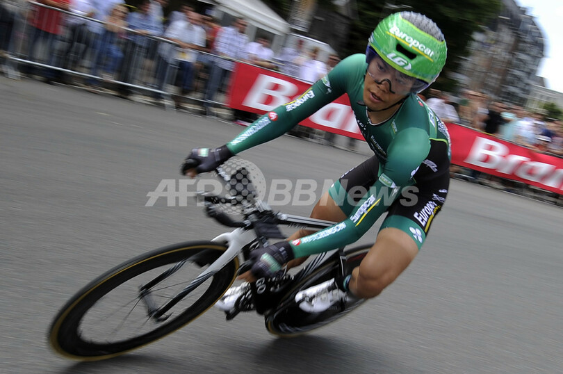 トップから38秒遅れの134位だったチーム・ユーロップカー(Team Europcar)の新城幸也(Yukiya Arashiro、2012年6月30日撮影)。(c)AFP/PASCAL PAVANI