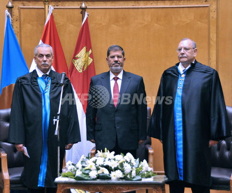 ニュース 政治・経済 モルシ大統領が就任、エジプト初の文民出身 2012年7月1日 11:11 発信地:カイロ/エジプト [ 中東・北アフリカ エジプト ] このニュースをシェア ‹ › ❮ 3/3 ❯ エジプト・カイロ(Cairo)の憲法裁判所で大統領就任の宣誓を行うムハンマド・モルシ(Mohammed Mursi)氏(中央、2012年6月30日撮影)。(c)AFP/HO/EGYPTIAN PRESIDENCY 画像作成中 ! 【7月1日 AFP】エジプトの大統領選で当選したムハンマド・モルシ(Mohammed Mursi)氏が6月30日、大統領に就任した。モルシ氏は、同国初めての文民出身の大統領。昨年以来エジプトを統治する軍部からの支持も取り付け、正式な権限移譲を受けた。(c)AFP 政治・経済 一覧へ> メディア・報道関係・法人の方向け 写真・動画 購入のお問合せ>