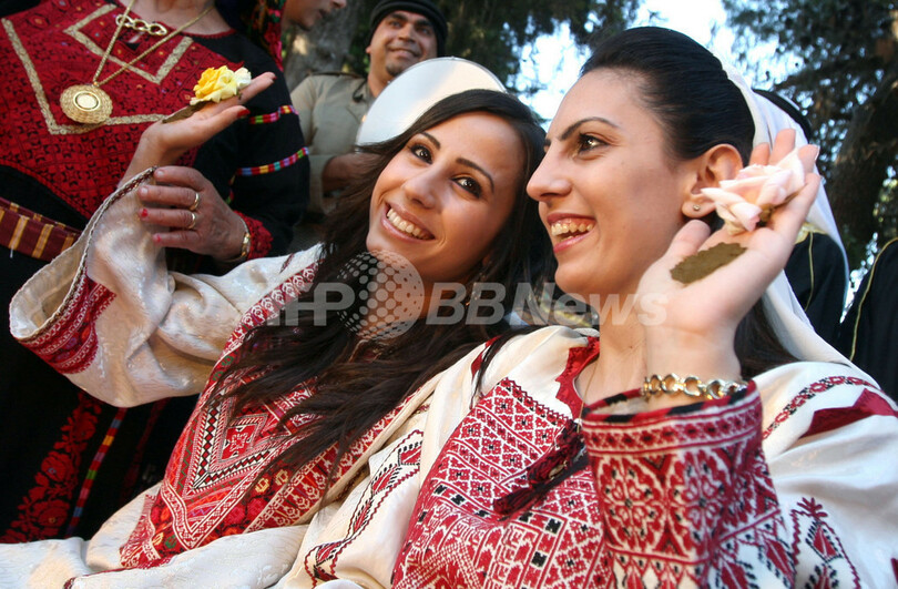 【7月1日 AFP】パレスチナ自治区ヨルダン川西岸(West Bank)のラマラ(Ramallah)で6月27日、パレスチナ民俗フェスティバル(Palestinian Folklore Festival)が開幕し、伝統にのっとった結婚式の再現が行われた。