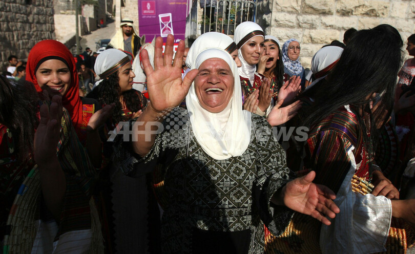 【7月1日 AFP】パレスチナ自治区ヨルダン川西岸(West Bank)のラマラ(Ramallah)で6月27日、パレスチナ民俗フェスティバル(Palestinian Folklore Festival)が開幕し、伝統にのっとった結婚式の再現が行われた。
