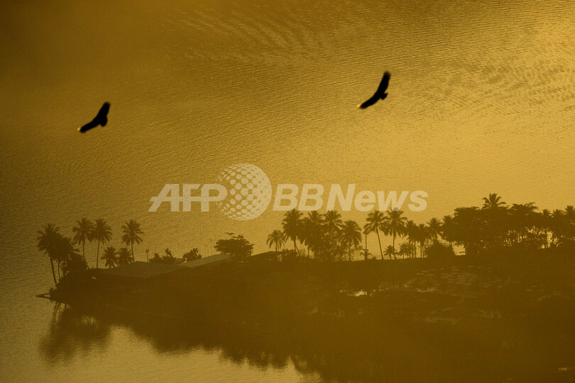 写真は、リオデジャネイロの湖ラゴア(Lagoa)をわたるヒメコンドル(2012年6月29日撮影)。(c)AFP/Christophe Simon