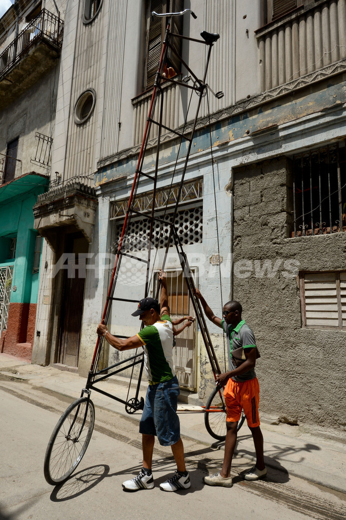ニュース ライフ こぼれ話 眺めは最高! 高さ5メートルの自転車でギネス挑戦 2012年7月2日 12:45 発信地:ハバナ/キューバ [ 中南米 キューバ ] このニュースをシェア ‹ › ❮ 5/11 ❯ キューバの首都ハバナ(Havana)で6月29日、自転車制作アーティストのフェリックス・ギローラ(Felix Guirola)さんが、高さ5メートル以上の巨大自転車でギネス世界記録(Guinness World Record)に挑戦した。写真は、友人の手を借りて巨大自転車を運ぶギローラさん(左、2012年6月29日撮影)。(c)AFP/ADALBERTO ROQUE 画像作成中 ! 【7月2日 AFP】キューバの首都ハバナ(Havana)で6月29日、自転車制作アーティストのフェリックス・ギローラ(Felix Guirola)さんが、高さ5メートル以上の巨大自転車でギネス世界記録(Guinness World Record)に挑戦した。(c)AFP ライフ 一覧へ> メディア・報道関係・法人の方向け 写真・動画 購入のお問合せ>