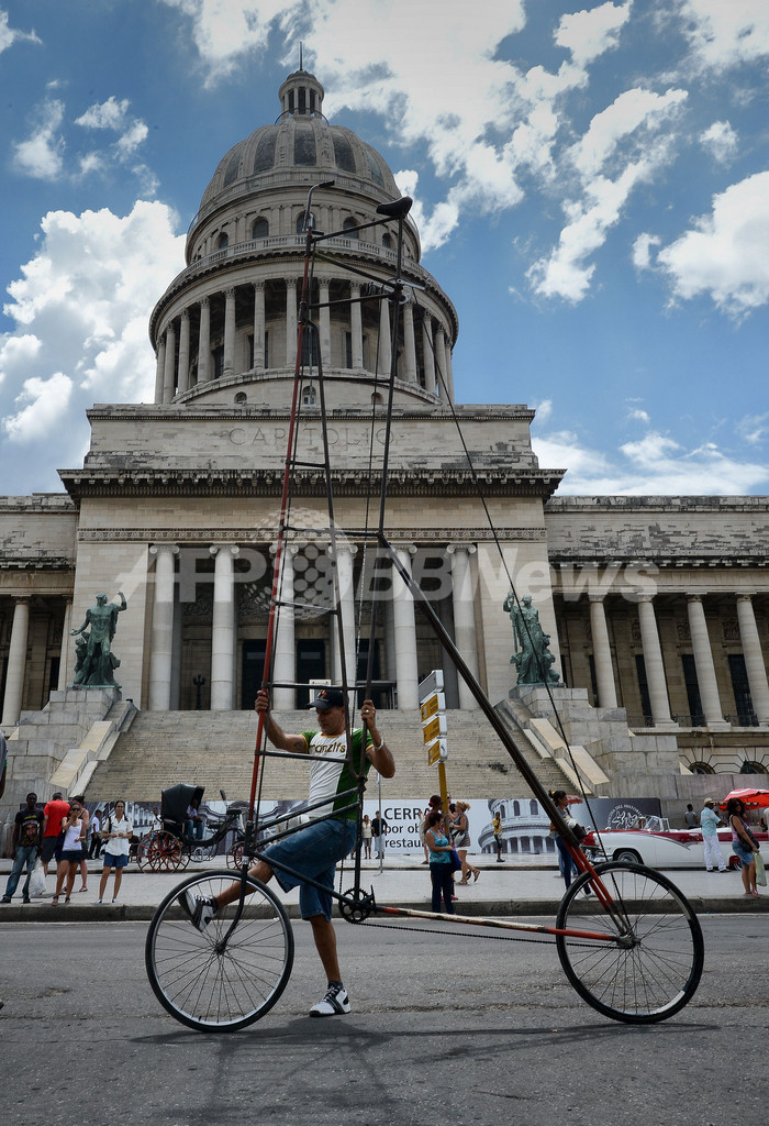 ニュース ライフ こぼれ話 眺めは最高! 高さ5メートルの自転車でギネス挑戦 2012年7月2日 12:45 発信地:ハバナ/キューバ [ 中南米 キューバ ] このニュースをシェア ‹ › ❮ 4/11 ❯ キューバの首都ハバナ(Havana)で6月29日、自転車制作アーティストのフェリックス・ギローラ(Felix Guirola)さんが、高さ5メートル以上の巨大自転車でギネス世界記録(Guinness World Record)に挑戦した。写真は、巨大自転車のサドルに上るギローラさん(2012年6月29日撮影)。(c)AFP/ADALBERTO ROQUE 画像作成中 ! 【7月2日 AFP】キューバの首都ハバナ(Havana)で6月29日、自転車制作アーティストのフェリックス・ギローラ(Felix Guirola)さんが、高さ5メートル以上の巨大自転車でギネス世界記録(Guinness World Record)に挑戦した。(c)AFP ライフ 一覧へ> メディア・報道関係・法人の方向け 写真・動画 購入のお問合せ>