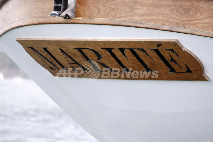 ちなみに、仏最大の帆船は「ベレム(Belem)号」(全長58メートル)だが、船体は鋼鉄製だ。写真は、マリテ号の船名プレート(2012年6月30日撮影)。(c)AFP/CHARLY TRIBALLEAU