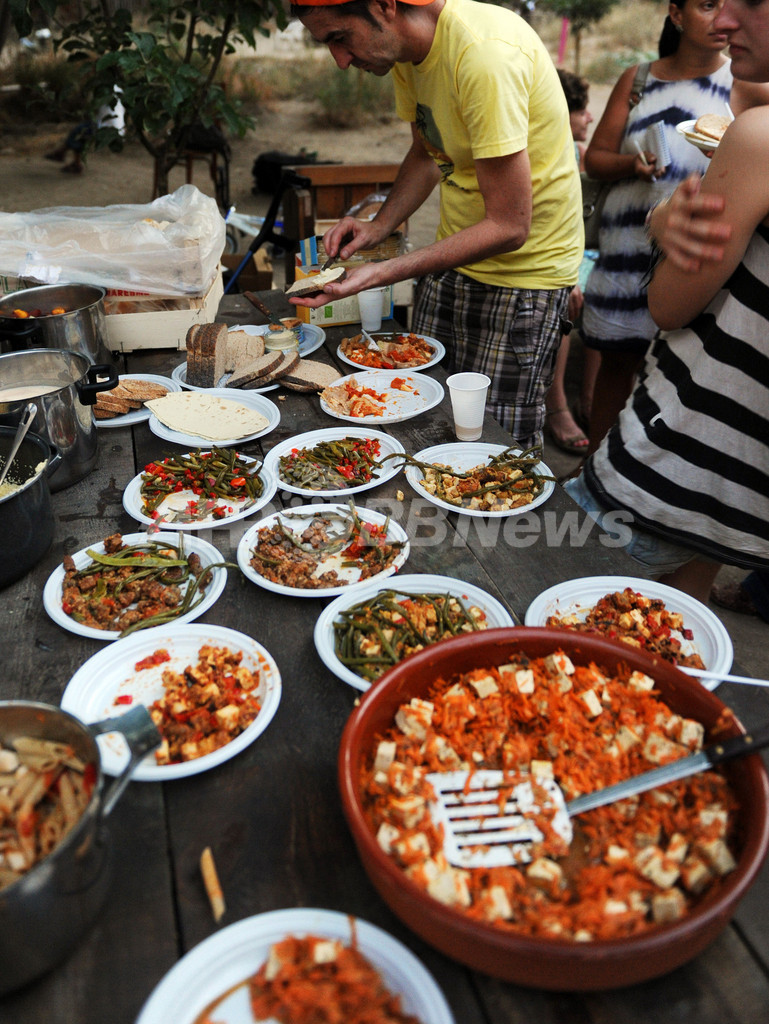 この運動はもともと米国で「フリーガニズム(freeganism)」として1990年代に始まったが、不景気と経済危機に苦しむスペインで、また新たな意味を獲得した。グループの設立メンバーの1人、チョミン・カルボ(Txomin Calvo)さんは「抗議だけで終わらせないために、経済的に苦しい状況の人々に無料で食事を提供することにした」と話す。