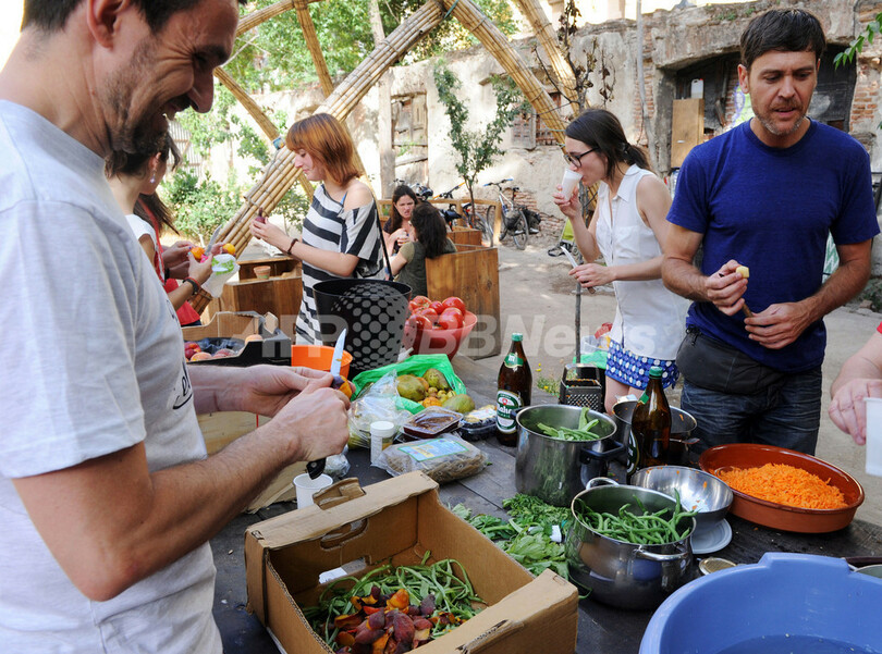【7月3日 AFP】心地よい夏の夜、スペイン・マドリード(Madrid)の公園に集まり、野菜のソテーやミックスサラダの夕食を野外で楽しむ30人ほどの人々――。だがこの夕食、材料はなんと生ごみ。文字通りの「ジャンクフード」だ。