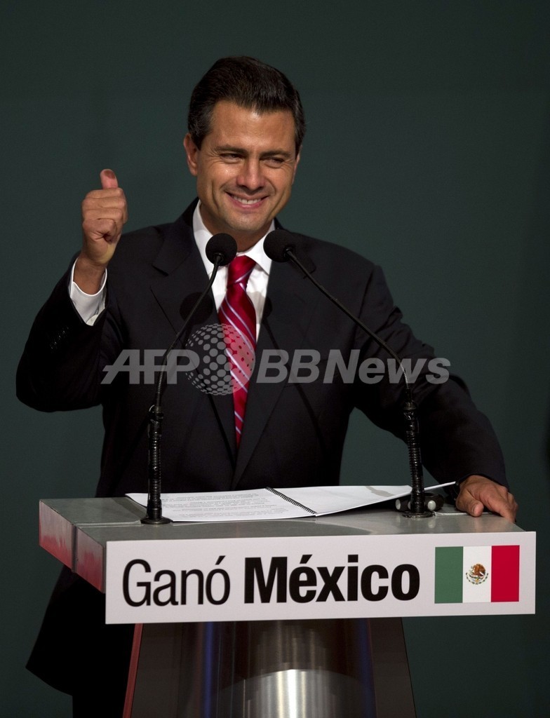 【7月2日 AFP】メキシコ大統領選の投開票が1日行われ、野党・制度的革命党(PRI)のエンリケ・ペニャニエト(Enrique Pena Nieto)前メキシコ州知事が当選を確実にした。連邦選挙機関(IFE)が発表した1回目の開票速報により明らかとなった。この結果、2000年の選挙で敗北するまで約70年間の1党支配を続けたPRIが再び政権を握ることになる。