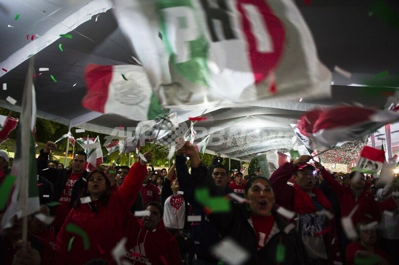 【7月2日 AFP】メキシコ大統領選の投開票が1日行われ、野党・制度的革命党(PRI)のエンリケ・ペニャニエト(Enrique Pena Nieto)前メキシコ州知事が当選を確実にした。連邦選挙機関(IFE)が発表した1回目の開票速報により明らかとなった。この結果、2000年の選挙で敗北するまで約70年間の1党支配を続けたPRIが再び政権を握ることになる。